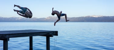 Legend has it that mobsters often chose Lake Tahoe as the final resting place of their foes. At a maximum depth of 1645 feet, and with a noticeably convex surface due to it's impressive scale, it sure does make for a good place to disappear. Luckily for us, we enjoyed hours of swimming, diving, and waterside activities alongside the shoreline - no encounters with mobsters or their victims. Our favorite spot along the route was Meeks Bay, where